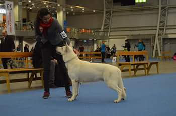 Hyvät mittasuhteet omaava uros. Erittäin hyvän mallinen pää. Hyvät korvat. Pigmentti saisi olla parempi. Murahti hampaita katsottaessa. Hyvä kaula ja ylälinja sekä runko. Hieman kerivä takaliike, saisi olla kyynärpäistä tiiviimpi. Hyvä luusto ja kulmaukset. Hyvä karva.
